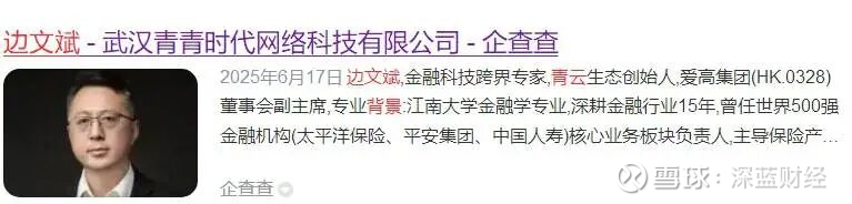 据网络公开资料,边文斌被誉为金融科技跨界专家,毕业于江南大学金融学专业,深耕金融行业15年,曾任太平洋保险、平安集团、中国人寿等世界500强金融机构核心业务板块负责人,主导保险产品精算、资管风控模型设计及综合金融业务创新。