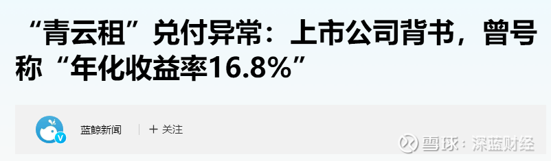 据蓝鲸新闻了解,从今年9月开始,“青云租”出现“提现困难”,大量投资者几十万、甚至上百万的本金至今无法收回。