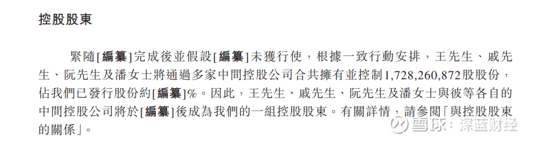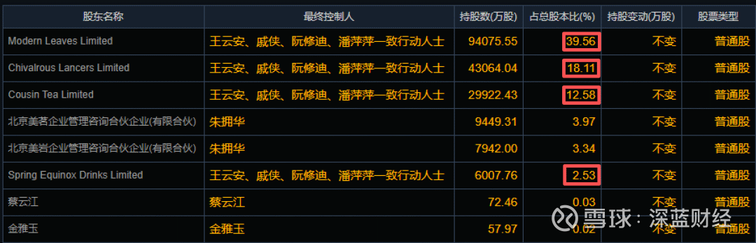 根据公司股权结构,古茗四位创始人——王云安、戚侠、阮修迪、潘萍萍是一致行动人,通过境外设立的家族信托合计持有公司约72.78%的股份,为公司控股股东。