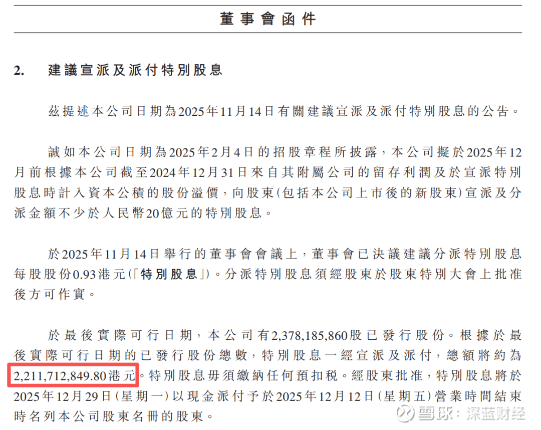 这笔分红,实际早在2025年2月招股书中就已预告:若上市成功,将在12月前派发不少于20亿元人民币的特别股息。如今看来,上市仿佛只是为完成这场财富转移的“临门一脚”。