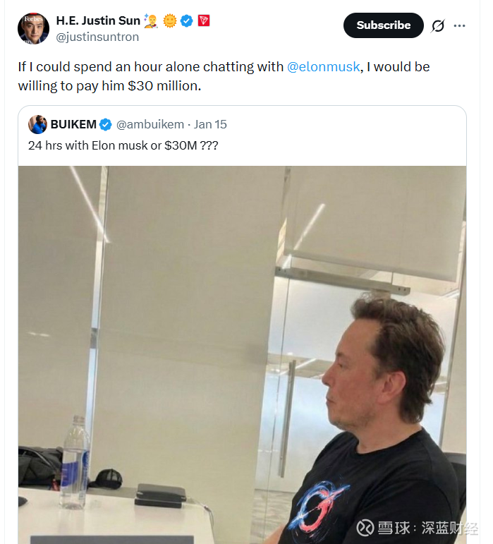 周日,加密货币亿万富翁孙宇晨在X上发帖表示,只要马斯克愿意与他单独聊一个小时,他将支付给马斯克3000万美元。