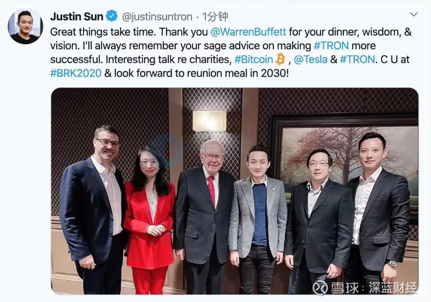孙宇晨发文回顾了这次会面,称其为“我人生中最美好的时刻之一”。