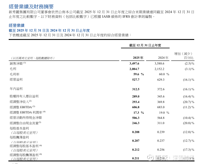 新秀丽于周五披露2025年全年业绩,净利润(归属于母公司)2.89亿元美元、按年减少16.4%,全年销售收入34.98亿美元、按年减少2.5%。