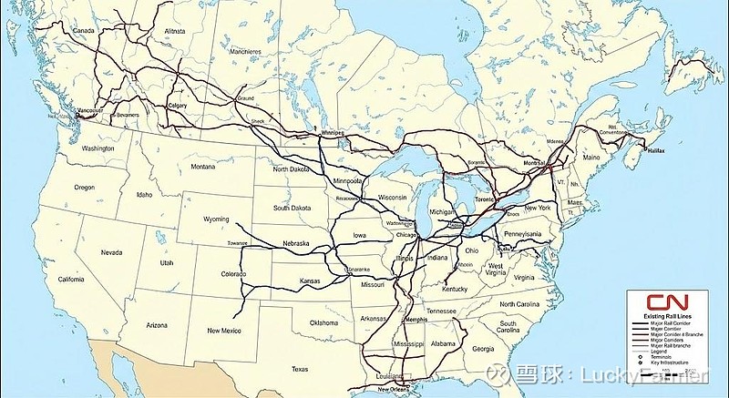 - 三海岸网络(Tri-coastal Network):这是 CN 最深的护城河。它是北美唯一一家同时连接温哥华/鲁珀特王子港(太平洋)、哈利法克斯(大西洋)及新奥尔良/莫比尔(墨西哥湾)的一级铁路。由于环保法规、土地征用和极高的初始资本开支,目前在北美建立一套竞争性铁路网络几乎是不可能的,这种地理唯一性赋予了 CN 极强的定价权。