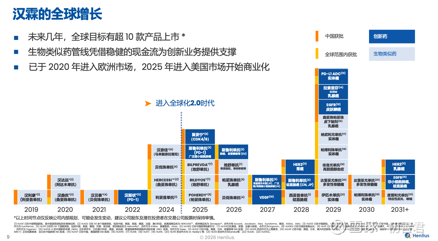 明确一点:公司截至目前4款欧盟获批产品、4款美国FDA获批产品,在高价值的欧美市场,已经是获批数量最多的创新药企之一了,这个节奏可比同行更猛、更稳。其中最具标志性的,就是HLX11、HLX14全都是在2025年下半年集中在美国获批,并且实现了“海外先于国内获批”,其中HLX11还是美国首款且唯一获批的帕妥珠单抗生物类似药。这一系列成绩,正是公司全球化2.0元年最硬核的标志:直接体现了公司国际注册能力和生产质量体系的成熟度,且反映出海外落地明显提速,全球化布局真正进入快车道。