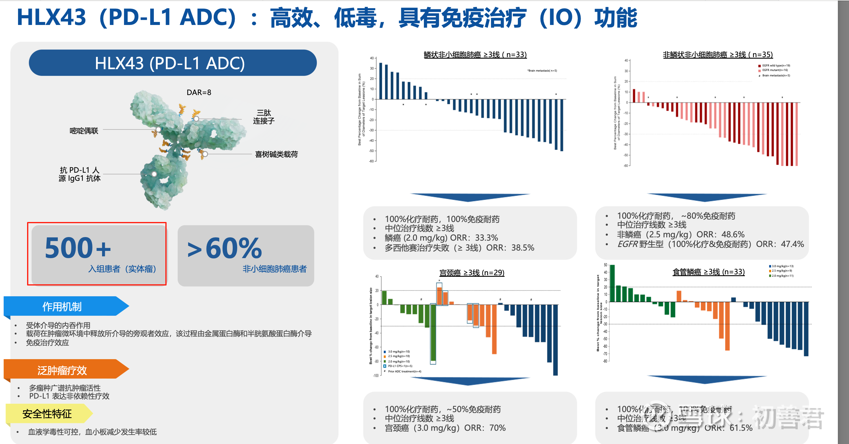 以及,PD-L1 ADC药物HLX43非小细胞肺癌后线的全球多中心二期临床,截至上个月累计入组140例,其中海外58例。而且根据JPM大会披露的信息,这款药的总入组人数实际已经突破500+,这种临床推进效率,真的太能打了!