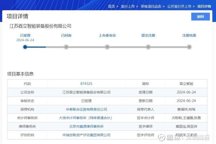 6月24日,北交所官网披露了江苏酉立智能装备股份有限公司(以下简称“酉立智能”或公司)招股说明书、上市保荐书、财务报告和审计报告等文件材料,公司上市申报材料被正式受理。