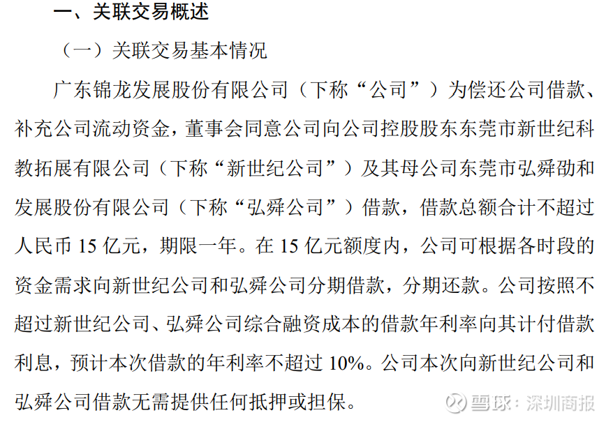 对于本次交易的目的和影响,锦龙股份在公告中表示,公司通过本次交易向新世纪公司和弘舜公司借款用于偿还公司借款、补充流动资金,能够缓解公司财务压力,符合公司的整体利益。本次交易定价公允,不存在损害公司及全体股东、特别是中小股东利益的情形,不会对公司独立性产生影响。
