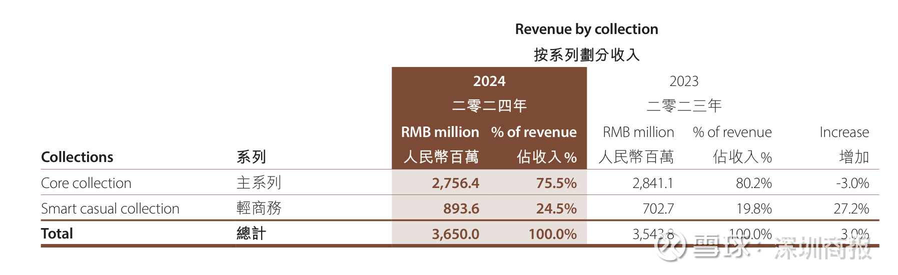 分系列来看,2024年,中国利郎主系列收入同比下滑3%至27.56亿港元;轻商务系列收入同比增长27.2%至8.94亿港元。
