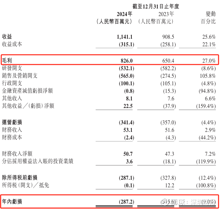 截至2024年12月31日止年度,祖龙娱乐的毛利较截至2023年12月31日止年度的650.4百万元增加27.0%至826.0百万元,主要由于于报告期内《龙族: 卡塞尔之门》在中国大陆上线及《以闪亮之名》持续发力导致收益增加所致。毛利率由截至2023年12月31日止年度的71.6%上升至截至2024年12月31日止年度的72.4%,于可比期间保持基本一致。