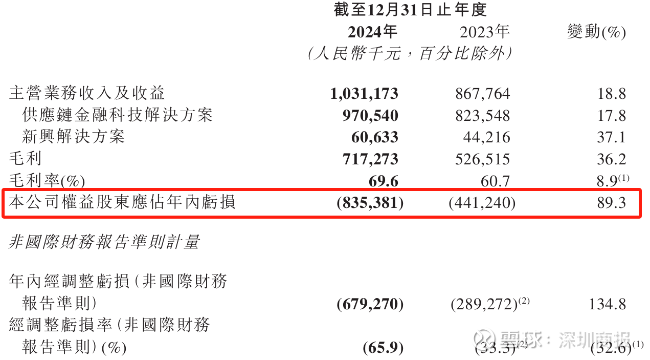 近日,曾被称为供应链金融科技第一股的联易融科技-W(09959.HK)(简称“联易融”)公告,截至2024年12月31日止年度业绩,归属母公司净亏损8.35亿元,同比扩大89%。
