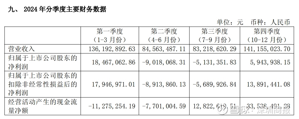 根据该公司同一天公布的2024年年报,2024年公司实现营业总收入4.45亿元,同比增长15.67%;归母净利润1026.16万元,同比扭亏;扣非净利润1723.46万元,同比扭亏;经营活动产生的现金流量净额为2738.49万元,同比增长143.37%。