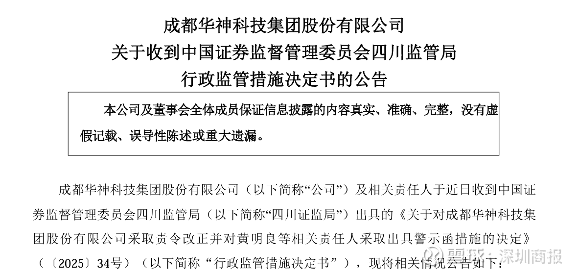 5月20日晚间,华神科技(深市代码:000790)公告称,公司及相关责任人近日被四川证监局责令改正,相关责任人被出具警示函。