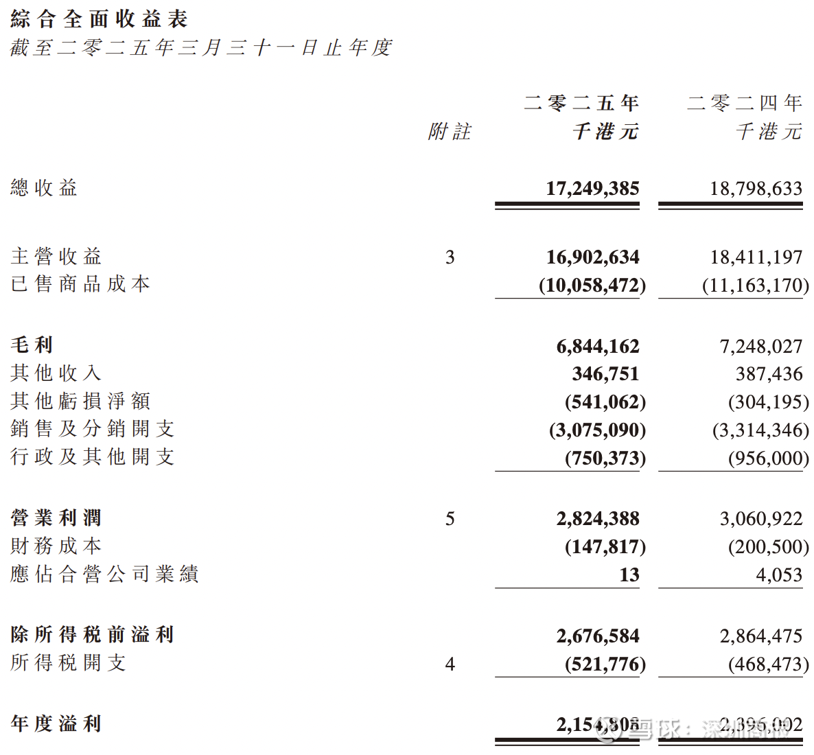 此外,境外运输及港口费用从约5.89亿港元增长约31.0%至约77.12亿港元,占收入的百分比从去年的约3.2%增长至2025财政年度的约4.6%,主要原因是海运费涨价导致相关费用增加。