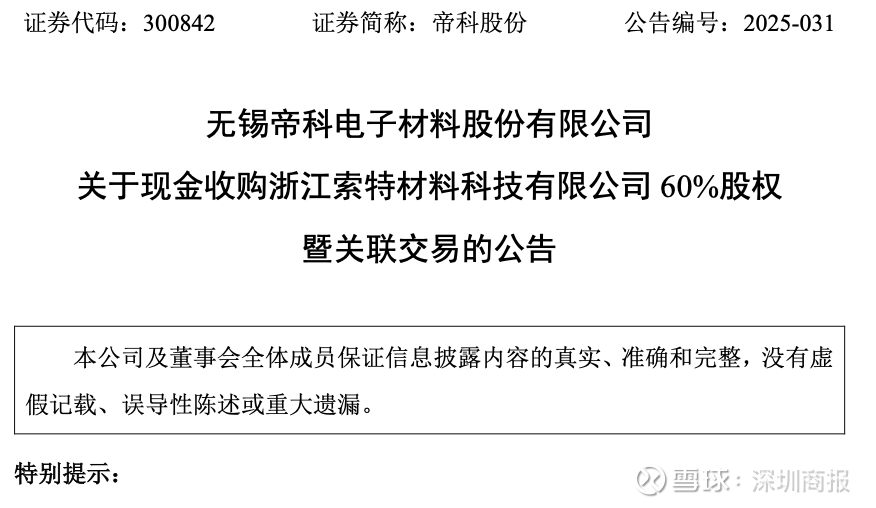 公告显示,2025年5月23日,帝科股份与安吉拔萃基金、无锡竹宇投资、新沂汇瑾投资签署了股权转让协议。公司计划向上述三家交易对方分别购买其持有的59.77%、0.115%和0.115%的浙江索特股权。