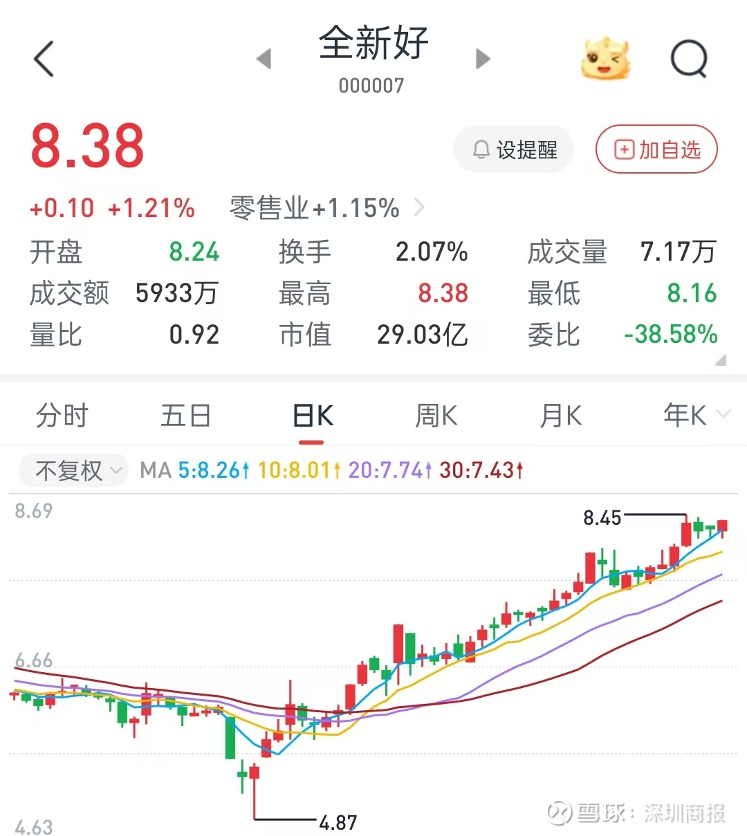 不过,4月25日以后,全新好股价继续涨升,6月9日,公司股价收盘报8.38元/股,涨1.21%,最新总市值29.03亿元。