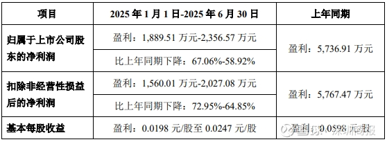 日前,嘉美包装还披露了业绩预告,预计2025年上半年归母净利润1889.51万元至2356.57万元,同比下降58.92%-67.06%;扣非净利润预计1560.01万元-2027.08万元,同比下降64.85%-72.95%;基本每股收益0.0198元/股-0.0247元/股。