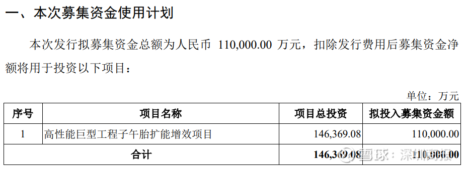 申报稿显示,本项目计划总投资14.64亿元,拟使用募集资金总额11亿元。项目建成后并全面达产后,将实现年新增约2万条巨型工程子午胎的产能。