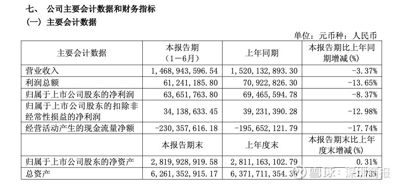 截至报告期末,公司总资产62.61亿元,同比下降1.73%;归属于上市公司股东的净资产28.20亿元,同比增长0.31%。