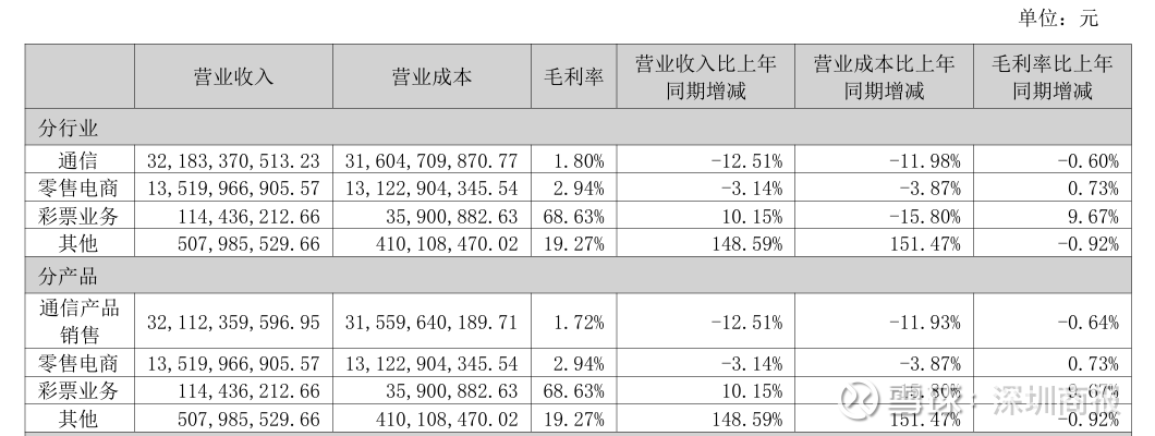 分产品来看,2025年上半年,天音控股通信产品销售收入同比减少12.51%至321.12亿元,毛利率同比下滑0.64%至1.72%;零售电商营收同比下滑3.14%至135.2亿元,毛利率同比微增0.73%至2.94%;彩票业务营收同比增长10.15%至1.14亿元,毛利率同比增长9.67%至68.63%。
