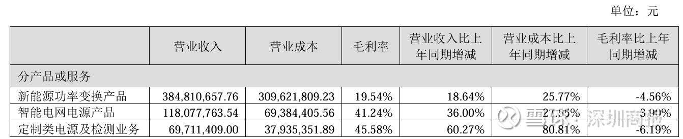 具体产品来看,公司新能源功率变换产品、定制类电源及检测业务营收均同比增加,但毛利率却分别减少4.56%、6.19%。