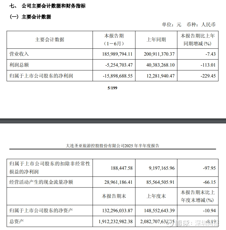 截至6月末,大连圣亚总资产19.12亿元,较上年末缩水8.19%;归属于上市公司股东的净资产1.32亿元,较年初减少10.94%。