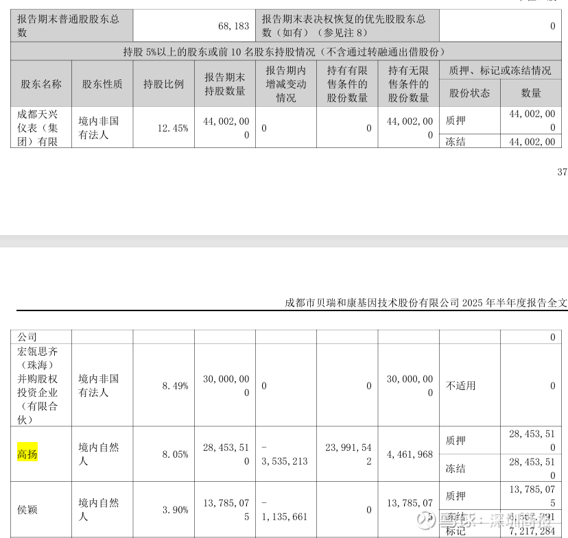 同时,截至2025上半年,高扬为贝瑞基因排名第三的大股东。本次股份权益变动后仍在前十股东行列中。同时,高扬还是贝瑞基因现任董事长总经理。