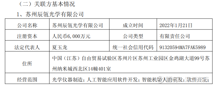 公告介绍,公司拟与关联方辰瓴光学、中科中成、非关联方广东至高共同出资10,000万元设立参股公司,参股公司主要从事机器人零部件、产品等采购、销售业务,及相关技术服务等。参股公司注册资本为1亿元,其中:辰瓴光学认缴出资5,100万元,占注册资本的51%;中科中成认缴出资1,000万元,占注册资本的10%;广东至高认缴出资2,900万元,占注册资本的29%;公司认缴出资1,000万元,占注册资本的10%。