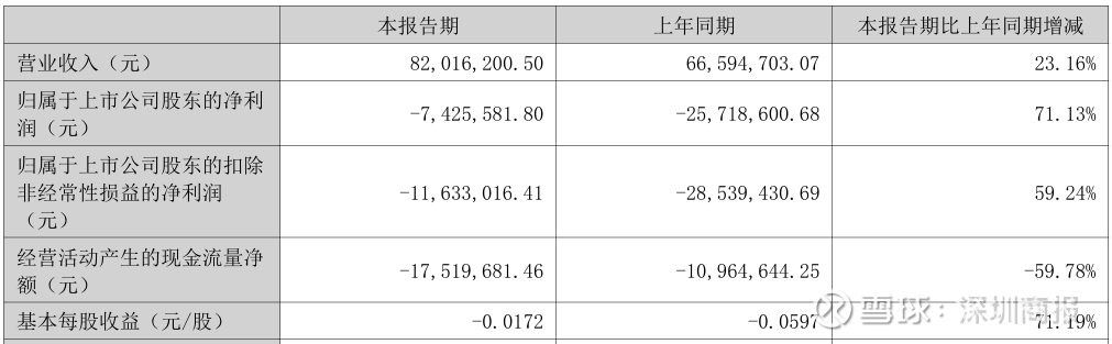 今年上半年,公司营业收入为8201.62万元,同比增长23.16%;归母净利润为-742.56万元,同比增长71.13%;扣非归母净利润为-1163.30万元,同比增长59.24%。