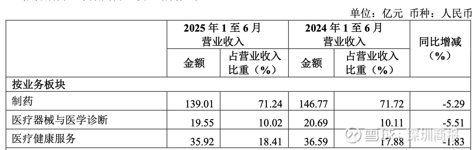 报告期内,医疗器械与医学诊断业务实现营业收入19.55亿元,同比下降5.51%。