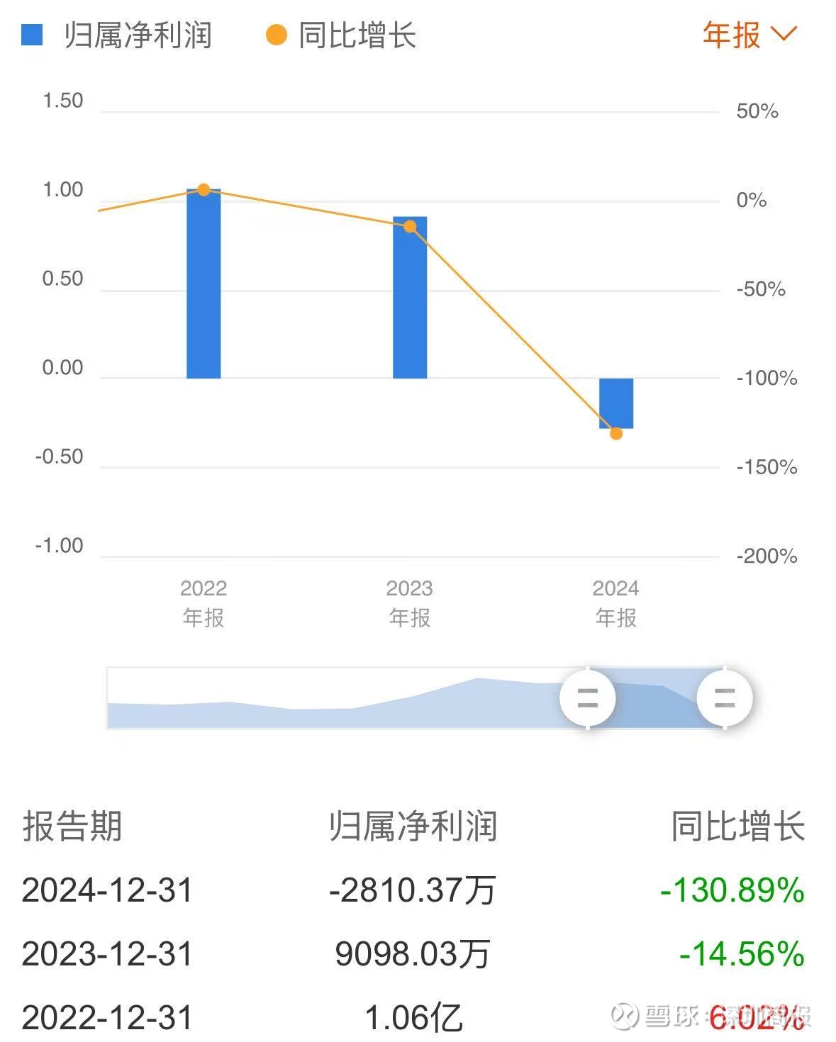 2022年公司净利为1.06亿元,2023年下滑14.56%至9098.03万元,2024年更是“大跳水”,全年净利亏损2810.37万元。扣非则是连续三年下滑,2024年扣非亏损5767.18万元。