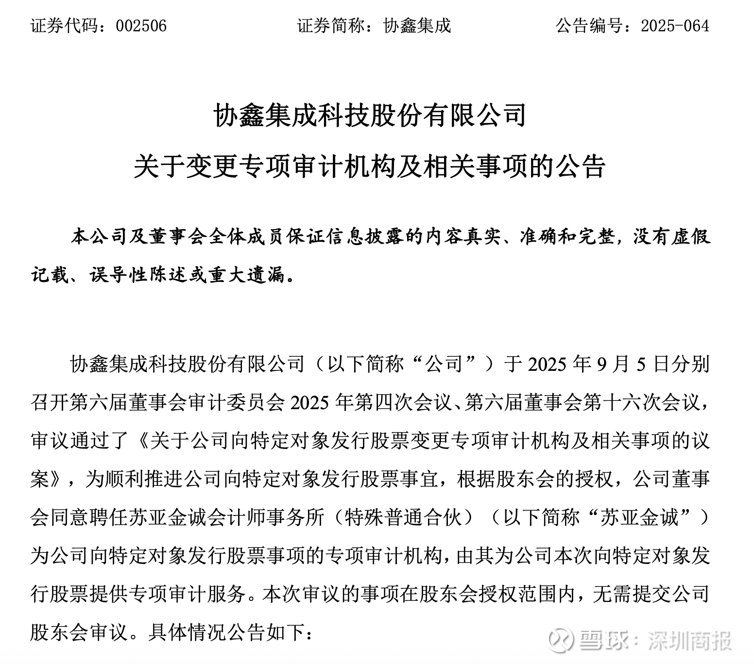 9月5日晚,协鑫集成(002506)披露关于变更专项审计机构及相关事项的公告。
