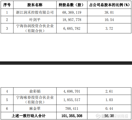 其中,叶剑平与俞彩娟为夫妻关系;叶剑平与俞彩娟夫妇是浙江润禾控股有限公司、宁海协润投资合伙企业(有限合伙)、宁海咏春投资合伙企业(有限合伙)的实际控制人。