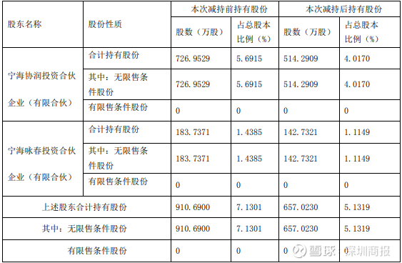 另外,公司股东宁海协润投资合伙企业(有限合伙)、宁海咏春投资合伙企业(有限合伙)此前也完成过一轮减持。