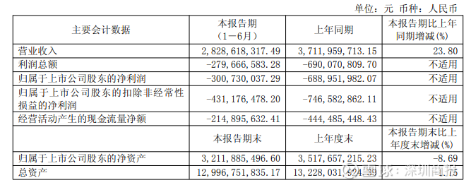 2025年上半年,公司营业收入为28.29亿元,同比下降23.80%;归母净利润为-3.01亿元,同比增长56.35%;扣非归母净利润为-4.31亿元,同比增长42.25%。