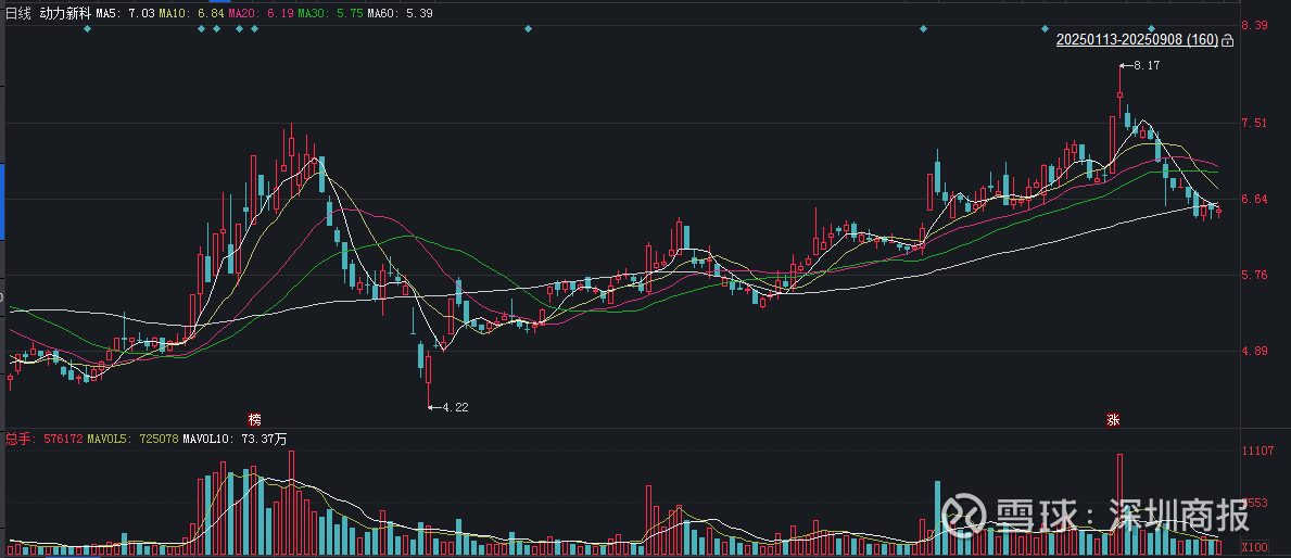 二级市场上,截至9月8日收盘,动力新科报6.50元/股,最新市值90.21亿元,今年来公司股价累计上涨近三成。