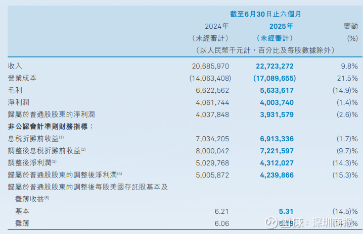 日前,中通快递(2057)通过《截至2025年6月30日止六个月的中期业绩公告》。公告显示,公司2025年上半年收入227.23亿元,同比增长9.8%;归属于普通股股东的净利润39.32亿元,同比下降2.6%;归属于普通股股东的调整后净利润42.40亿元,同比下降15.3%。公司拟每股派息0.3美元,股息派发日为2025年10月24日。