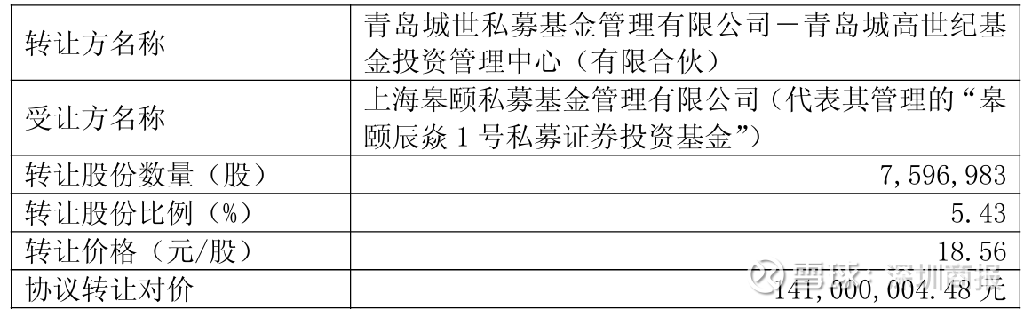 截至公告披露日,城世基金持有公司1244.09万股,占公司总股本的8.89%,为公司第二大股东。这意味着,本次权益变动后,城世基金将减少超六成持股,皋颐辰焱将成为公司持有股份5%以上的股东。