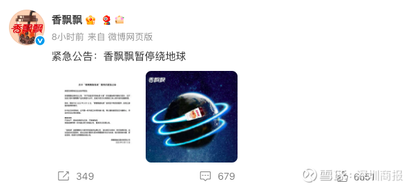 9月13日,香飘飘官方微博发布紧急公告:“香飘飘暂停绕地球。”