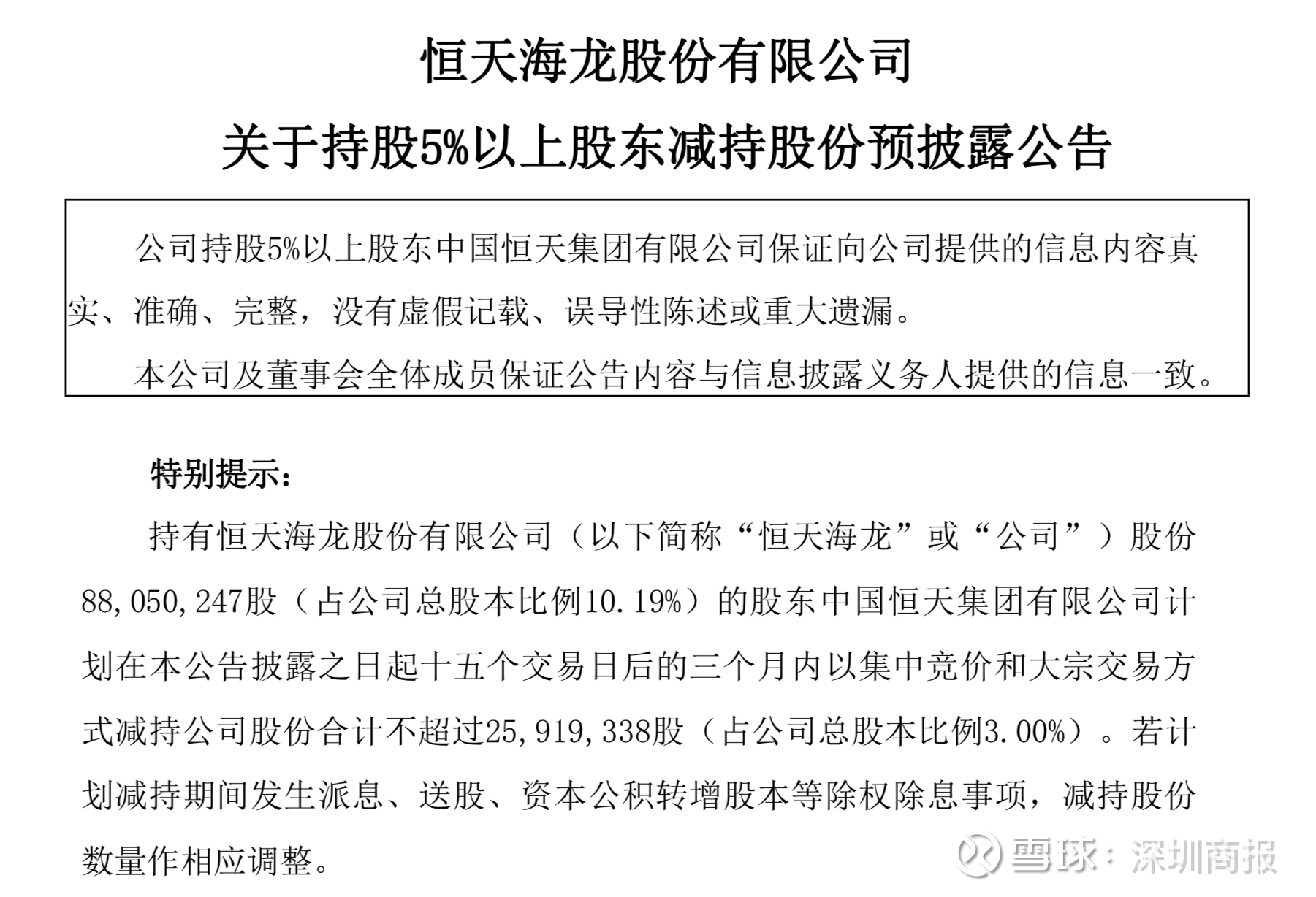 9月12日,恒天海龙(000677)发布公告,持股5%以上股东中国恒天集团有限公司计划在未来三个月内通过集中竞价和大宗交易方式,减持不超过2592万股,占公司总股本的3%。