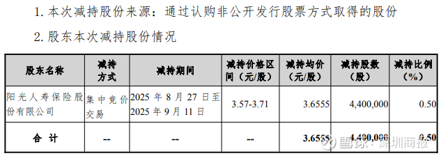 本次减持均价3.6555元/股,套现约1600万元。减持后,阳光人寿的持股比例降至4.72%,仍是公司第二大股东。