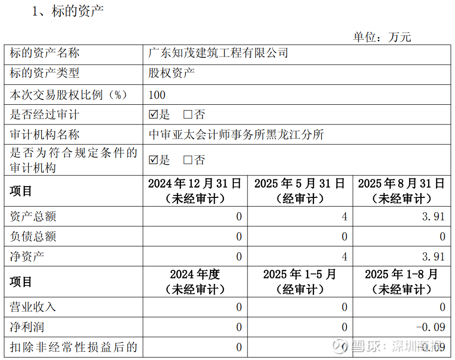 公告显示,广东知茂2024年以来就没有营业收入,截至今年8月31日资产总额3.91万元,净利润-900元。