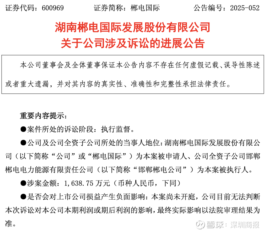 郴电国际表示,对本次华兴能源公司申请执行监督事项,公司高度重视,积极应诉,依法主张自身合法权益,切实维护公司和股东利益。