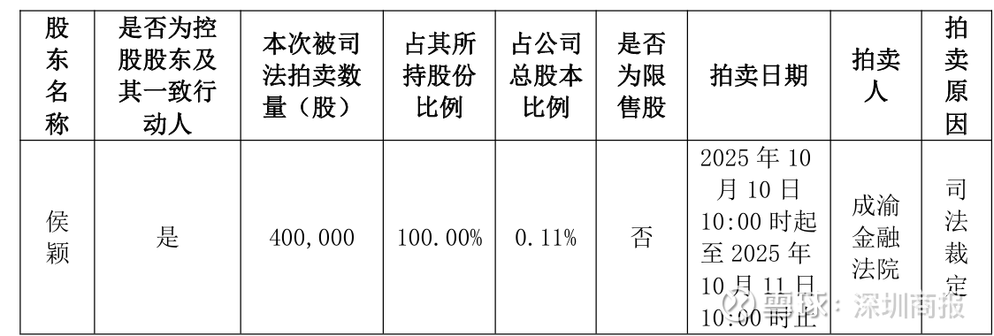 值得一提的是,此次拍卖的起拍价为11.988元/股,基于首次拍卖流拍价格的90%。该股份为无限售流通股,已被全部质押和司法再冻结。若本次司法拍卖成功并完成过户,侯颖不再持有公司股份,与公司控股股东高扬先生将不再具有一致行动关系。