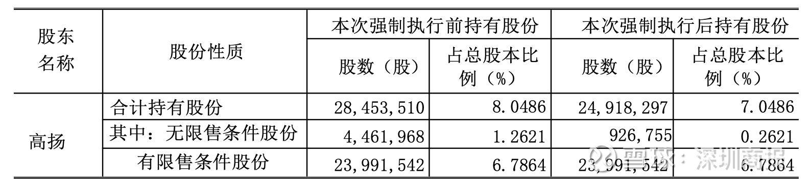 8天前,公司控股股东高扬刚披露,其因股票质押违约,累计被强制执行353.52万股公司股份,占公司总股本比例不超过1%。