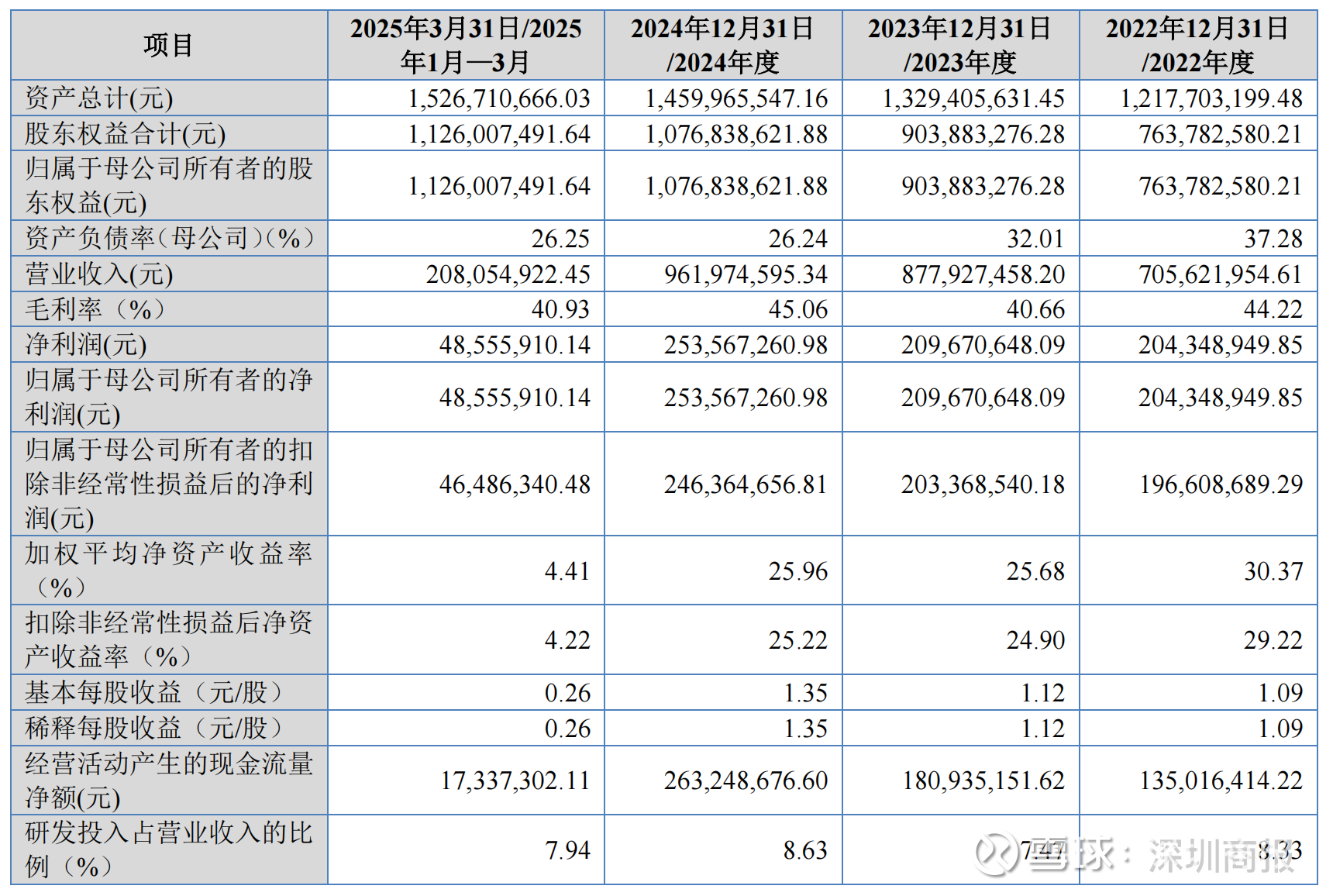 报告期内(2022年~2025年前三月),公司营业收入分别为7.06亿元、8.78亿元、9.62亿元和2.08亿元,扣非净利润分别为1.97亿元、2.03亿元、2.46亿元以及4648.63万元。