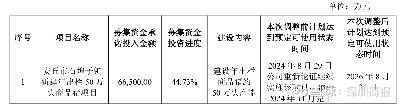 同日,龙大美食还宣布,对“安丘市石埠子镇新建年出栏50万头商品猪项目”和“山东新建年出栏66万头养殖项目”达到预计可使用状态的日期延长至2026年8月31日,同时对这两个项目进行重新论证。值得一提的是,这已非上述项目首次延期。