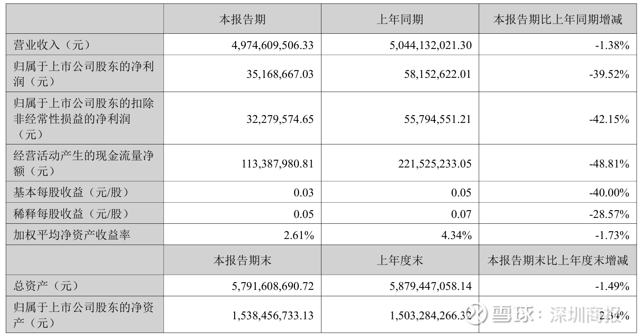 2025年上半年,公司实现营业收入49.75亿元,同比减少1.38%;归母净利润为3516.87万元,同比减少39.52%;扣非净利润为3227.96万元,同比减少42.15%。