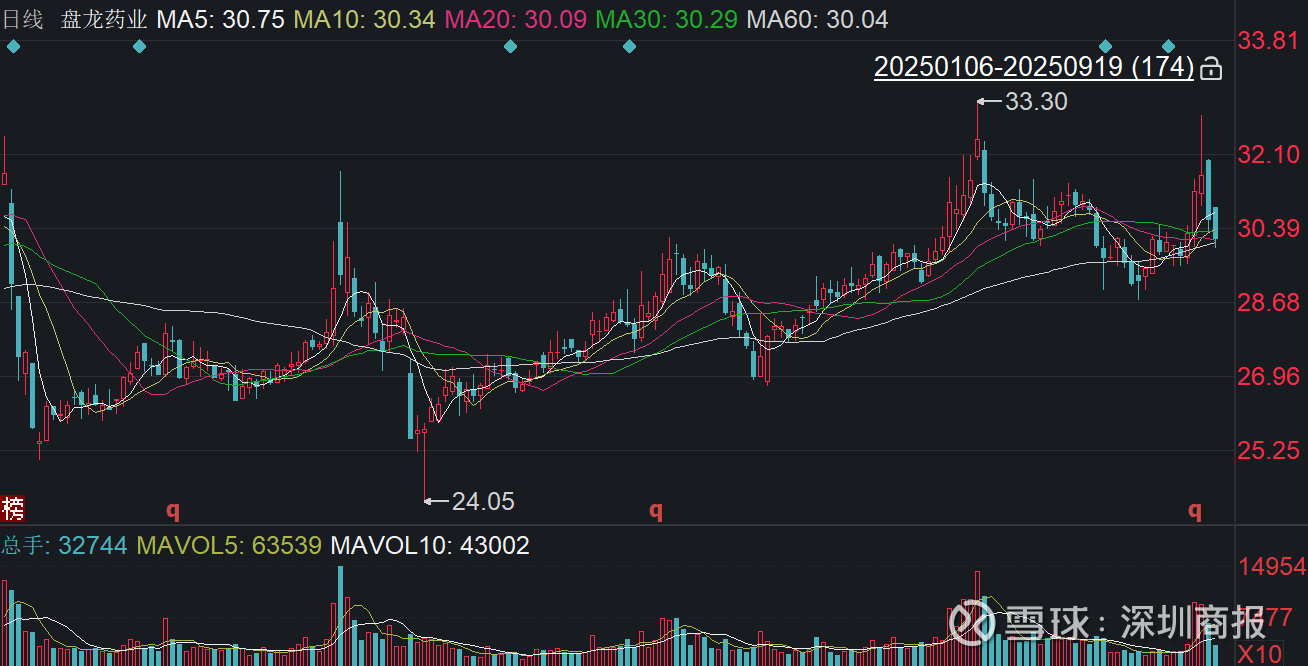 二级市场上,截至9月19日收盘,盘龙药业下跌1.41%报30.12元/股,最新市值32.01亿元,今年来公司股价近乎“原地踏步”。
