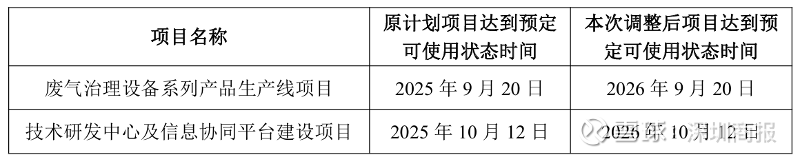 据9月18日公告,公司召开第三届董事会第四次会议,同意在项目实施主体、募集资金投资用途及募集资金投资规模均不发生变更的情况下,将公司首次公开发行股票募集资金投资项目废气治理项目达到预定可使用状态的时间由2025年9月20日延期至2026年9月20日,协同平台项目达到预定可使用状态的时间由2025年10月12日延期至2026年10月12日。